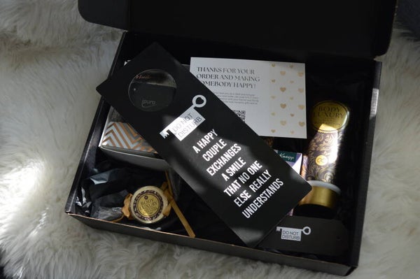 De box bevat alle ingredienten voor quality time met je partner met als extra een deurhanger " Do not Disturb".